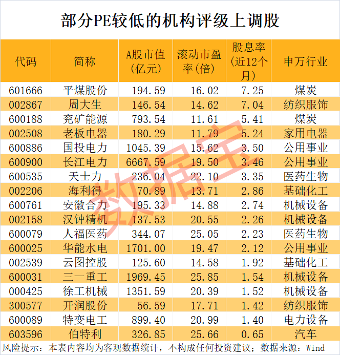 低PE+高股息股出炉