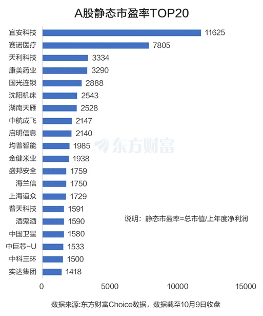 数据显示,截至10月9日收盘,近期不少“明星科技股”的静态市盈率都处在高位。比如华虹公司的静态市盈率达585倍,海光信息、佰维存储的静态市盈率也超过300倍。还有部分公司虽然没有到300倍的红线,但也超过了200倍,比如软通动力、深信服、格科微、科大讯飞、上海电气、胜宏科技等等。