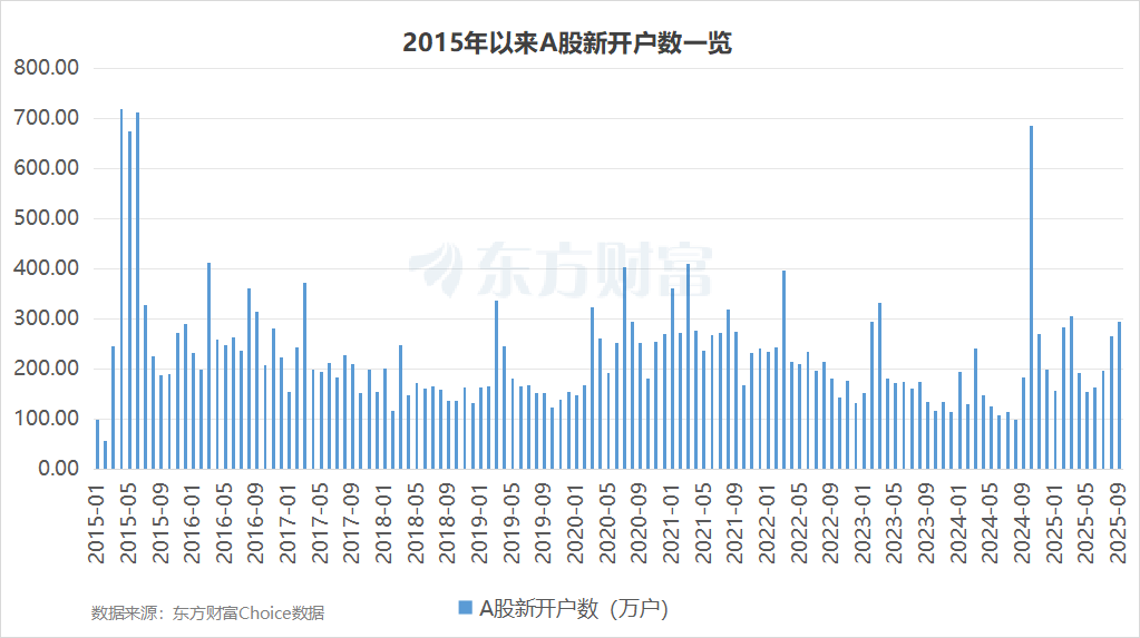 9月A股新开户数293.72万户,成为今年以来单月第二高开户量,仅次于今年3月A股新开户数306.55万户。