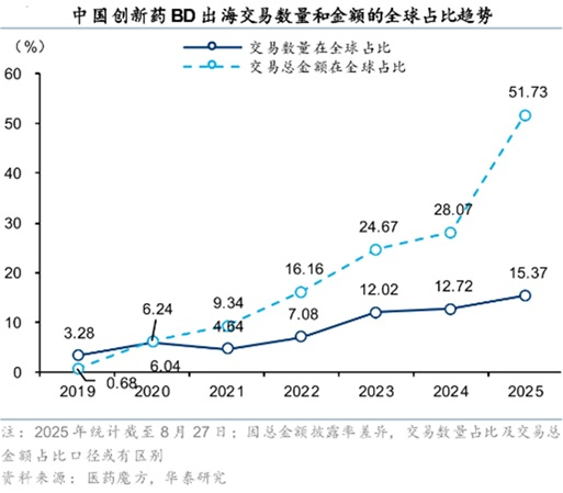 华泰证券近期的一份研报显示,年内截至8月17日,中国创新药BD出海交易数量在全球占比15.37%;交易金额在全球占比为51.73%。