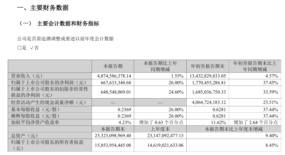 10月20日,北京燕京啤酒股份有限公司 (燕京啤酒,000729.SZ)披露2025年第三季度报告,第三季度公司实现营业收入为48.75亿元,同比增长1.55%;归母净利润为6.68亿元,同比增长26%。