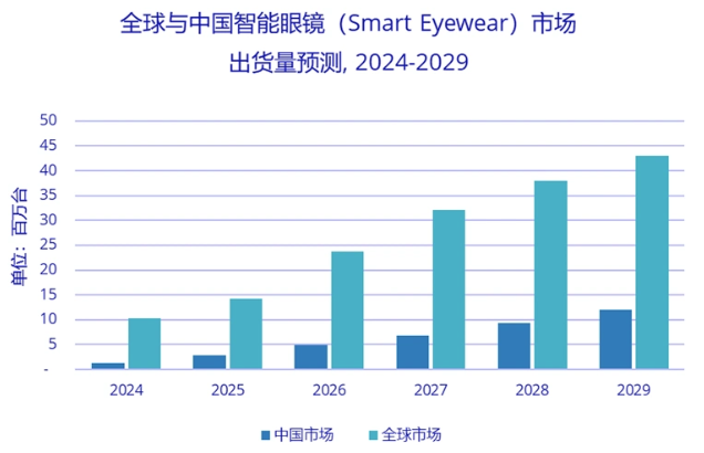 未来,随着产品形态持续创新、应用场景不断拓宽,智能眼镜有望成为下一代人机交互入口,为消费电子市场带来新增长动力。IDC预计,到2029年全球智能眼镜市场出货量将突破4000万台,其中中国市场份额将稳步提升,预计五年复合增长率(2024~2029年)将达到55.6%,增速位居全球首位。