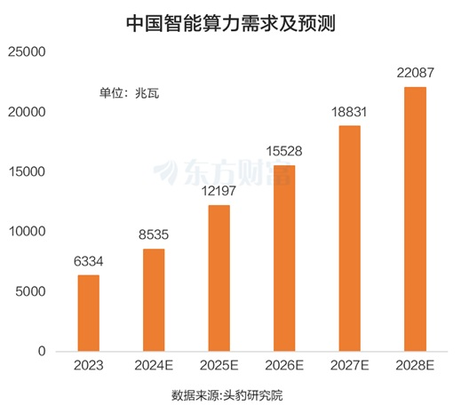 在这样的大背景在,头豹研究院表示,伴随着人工智能大模型及其相关应用的爆发式发展,智能算力的需求正在经历前所未有的激增,预计到2028年,中国智能算力整体需求将超20000兆瓦。
