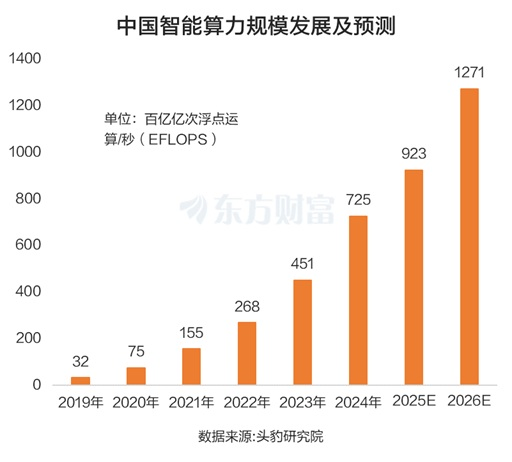 而从算力规模来看,头豹研究院表示,我国智能算力规模在2025年有望达到923EFLOPS(百亿亿次浮点运算/秒),2026年将增加到1271EFLOPS,2019年至2026年的CAGR预计高达68.97%。