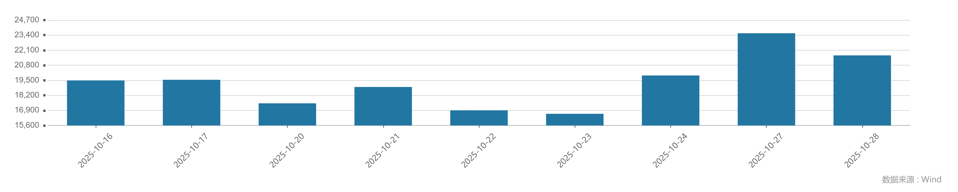 数据显示,自10月16日A股结束连续40个交易日成交额超过2万亿元后,连续7个交易日的成交额均未能再次超过2万亿元。而在10月27日沪指逼近4000点的当天,市场成交额达到2.36万亿元。沪指成功站上4000点的周二(10月28日),市场成交额再次超过2万亿元达到2.17万亿元。
