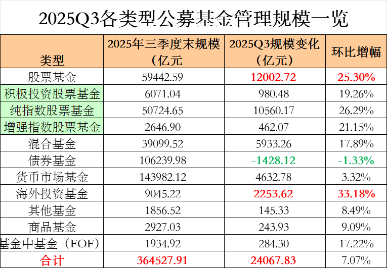 三季度A股强势上涨,公募基金规模迎来全方位扩容。