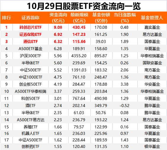 数据显示,头部基金公司旗下部分ETF净流入步伐持续。