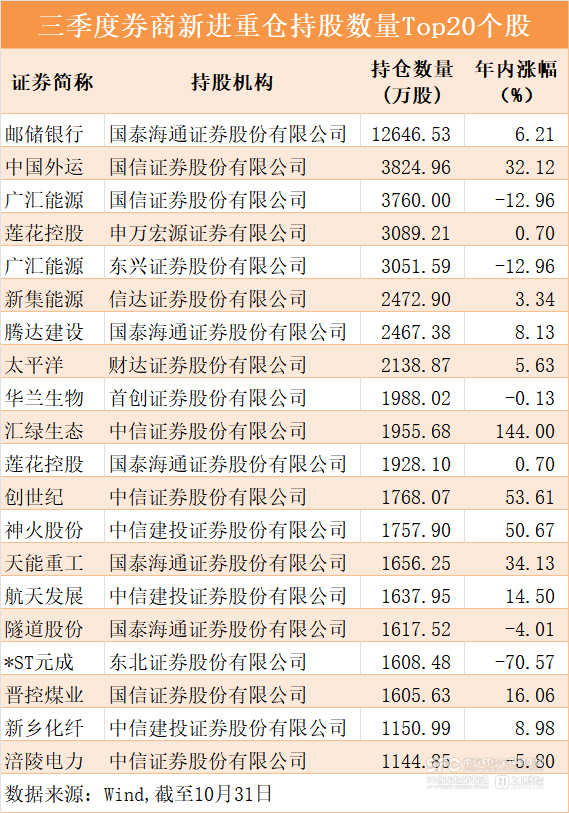 而从新进个股持仓数量来看,金融、能源等传统板块的龙头标的仍获不少券商青睐。