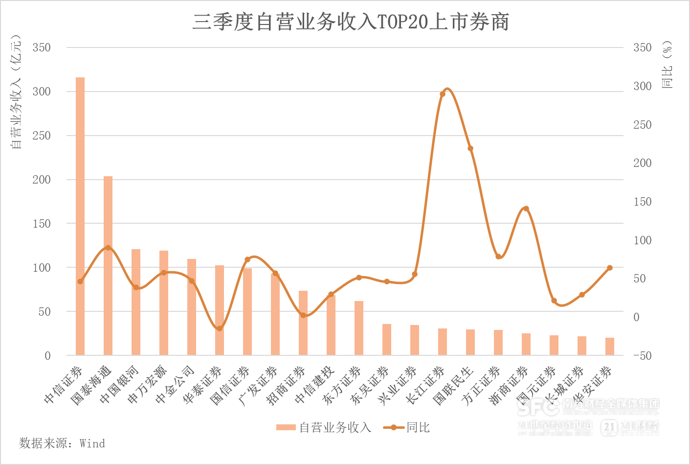 不过,结构性行情下,仍有券商自营投资表现不佳。前三季度,华林证券、中原证券、华泰证券、国海证券和中银证券5家券商自营业务收入不增反降。