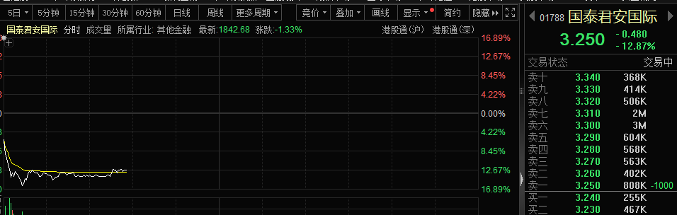 今年6、7月份那波行情当中,国泰君安国际可谓是风头无两。在不到一个月的时间里,该股涨了将近600%,但随后开启持续调整行情。今天,该股迎来暴跌,股价一度跌近17%。