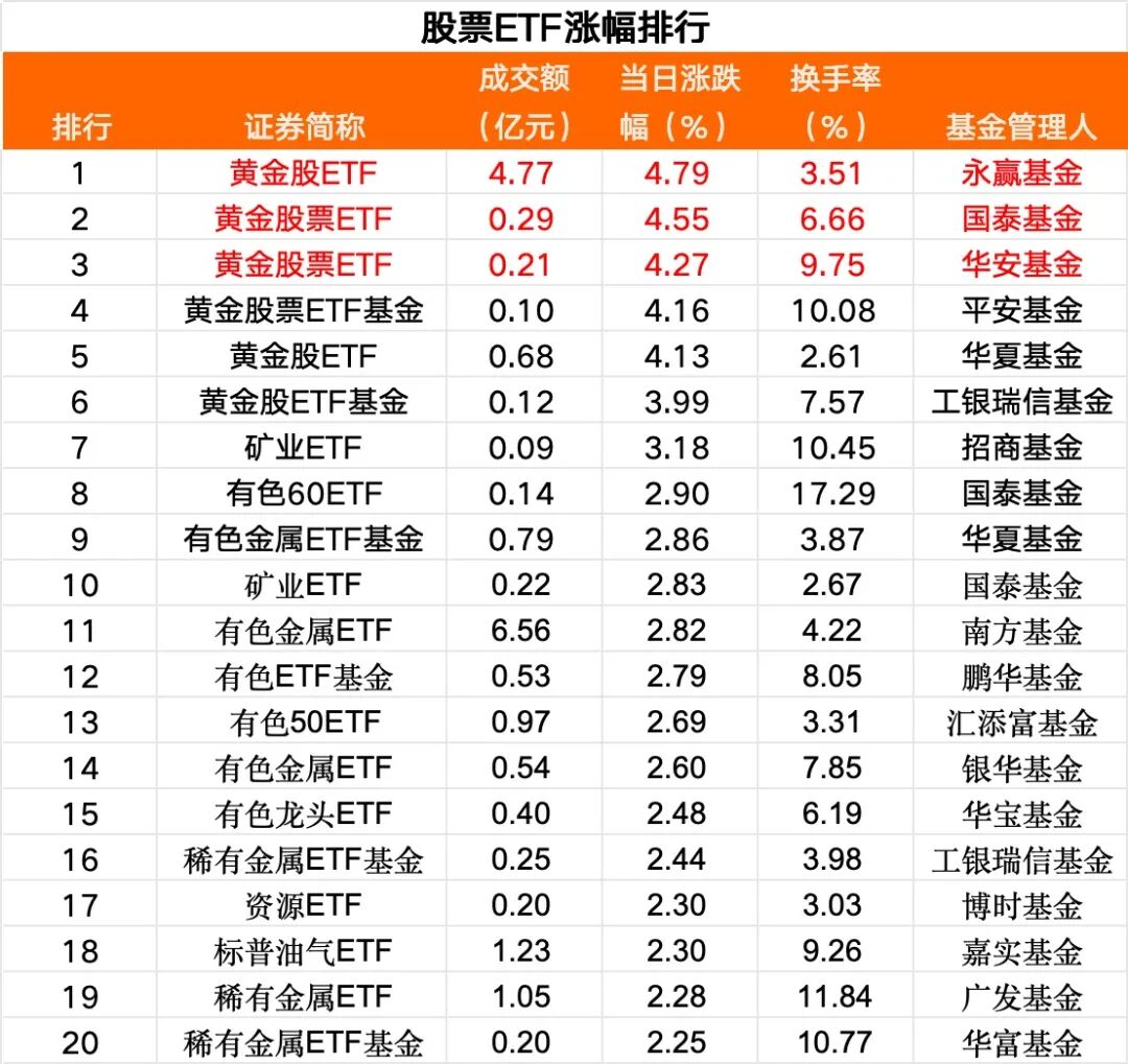 黄金股ETF领涨