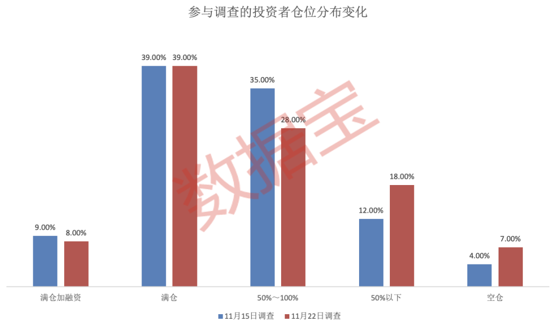 从仓位变化来看,本周26%的受访者进行了“加仓”,18%的受访者进行了“减仓”,11%的受访者进行了“清仓”;其余45%持仓不动。