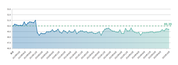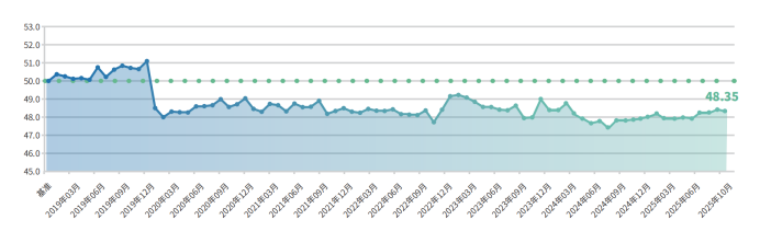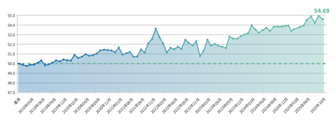 2025年10月,普惠金融-景气指数达49.39点,较9月下降0.11点,仍高于去年同期。融资端规模持续扩张,成本稳中有降,政策红利持续释放;经营端企业平稳运行的基本面未变,企业发展潜力有望进一步释放。