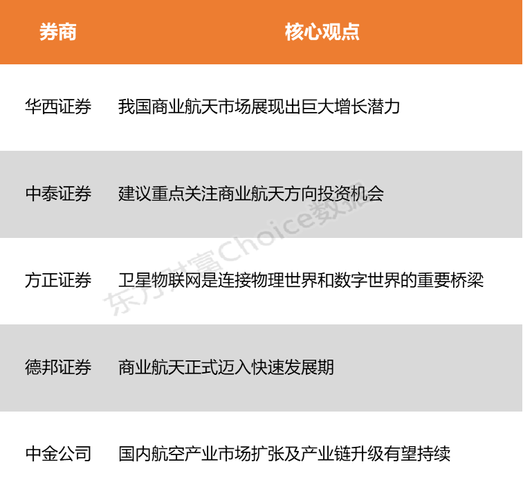 中泰证券:建议重点关注商业航天方向投资机会