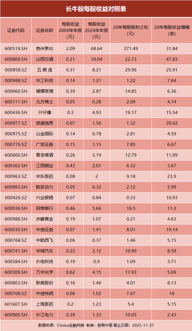 过去20年,股市里多只长牛股都是来自基本面的推动,而来自估值的膨胀基本可以忽略不计。