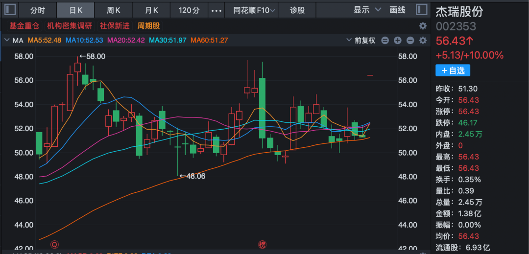 11月28日,杰瑞股份(002353)“一”字涨停。