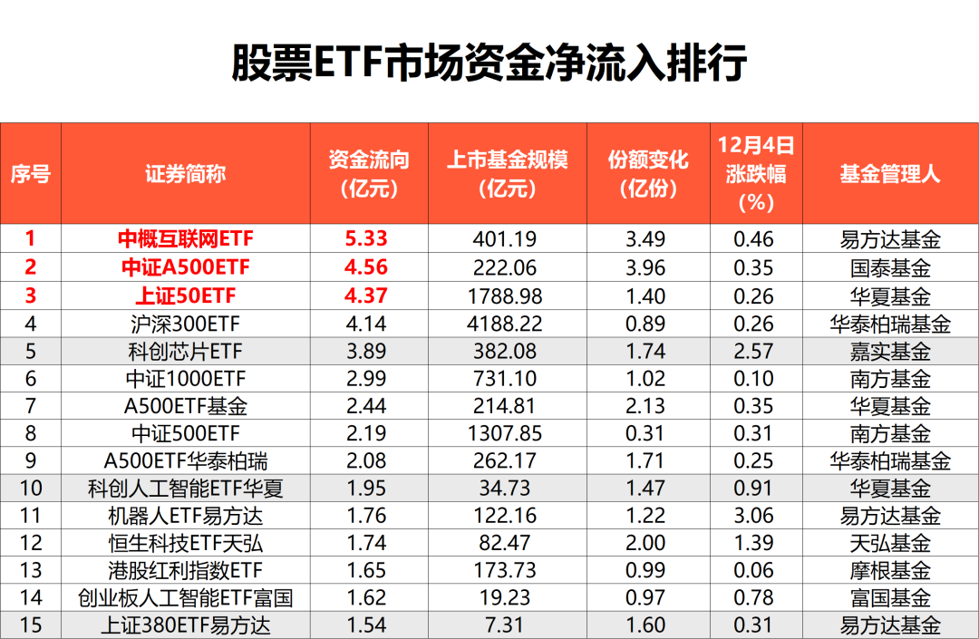 Wind数据显示,截至12月4日,全市场1270只股票ETF(含跨境ETF)总规模达4.56万亿元。