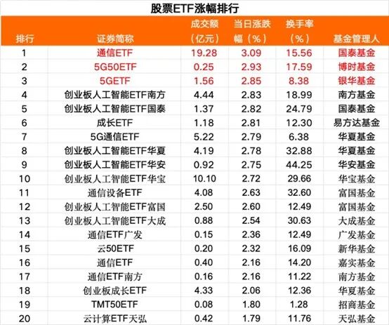 通信、人工智能相关ETF领涨