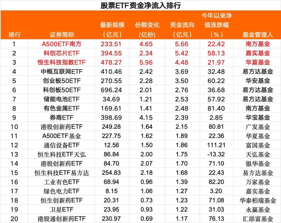 数据显示,头部基金公司旗下部分ETF净流入步伐持续。