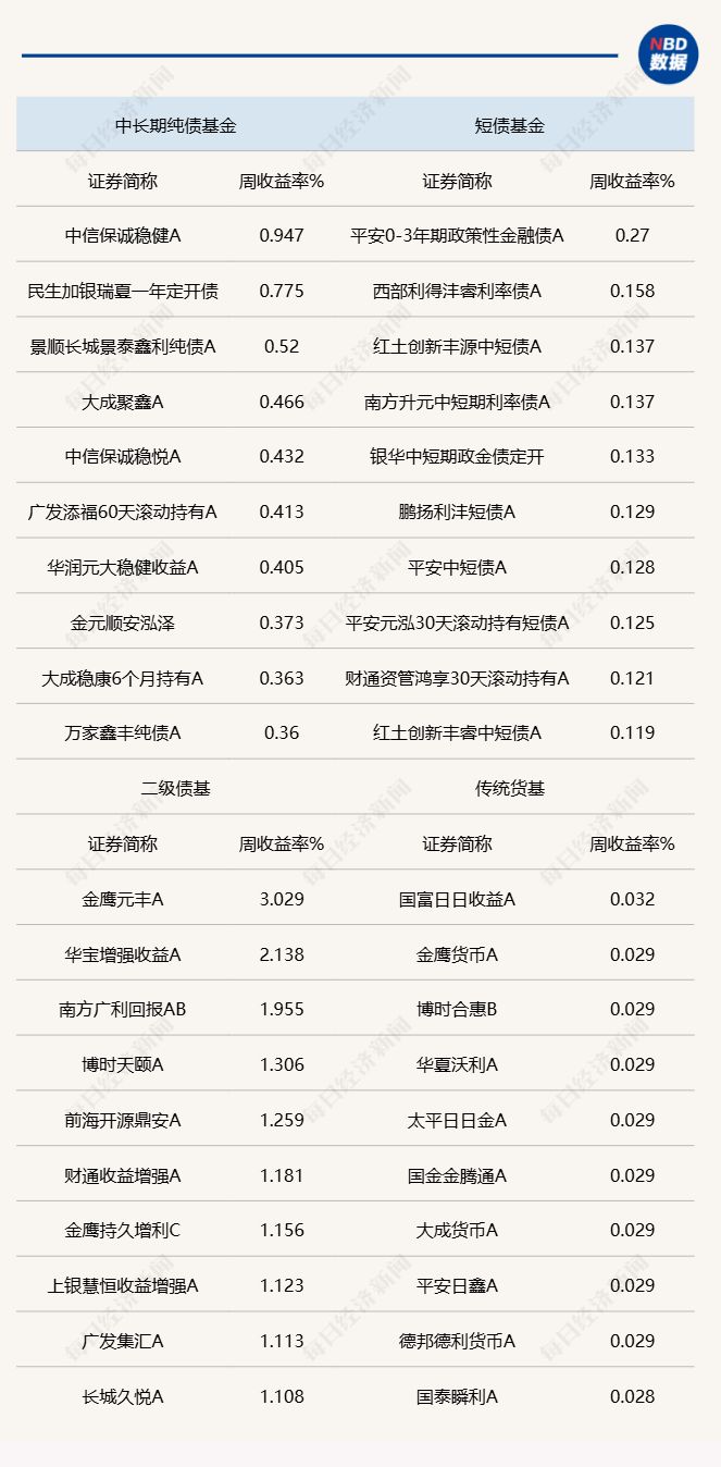 纯债基金业绩回升,单周业绩告负产品数量降低
