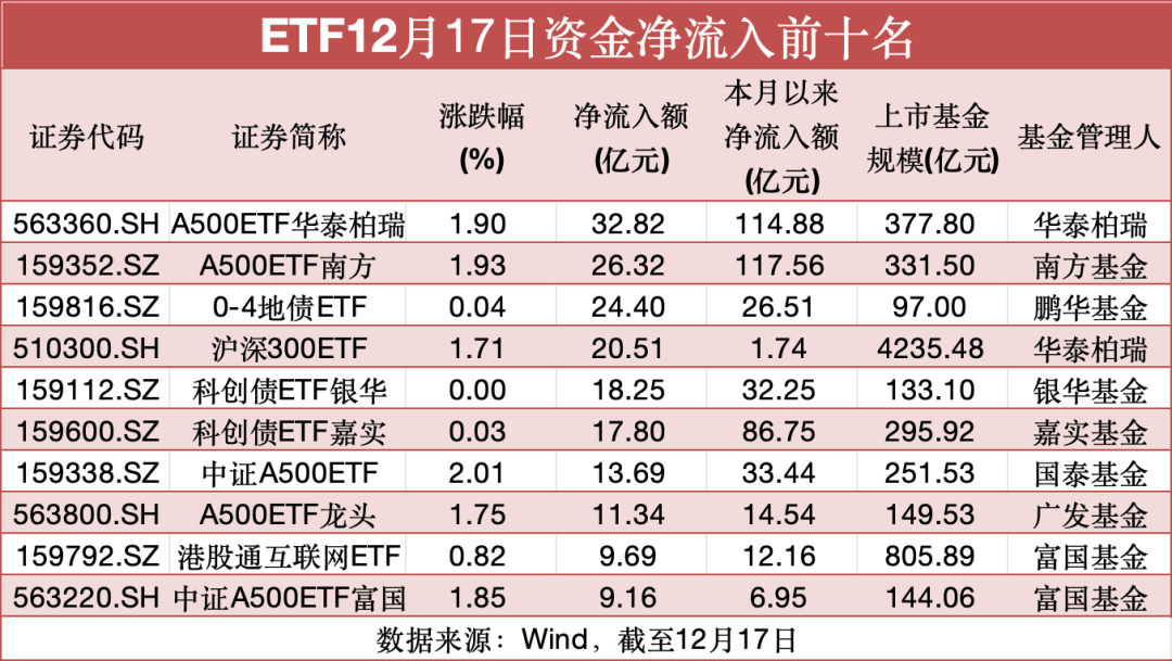 12月17日午后,多只宽基ETF放量异动,带动上证指数直线拉升。随着今日最新ETF资金流向数据披露,背后的资金推手也浮出水面。