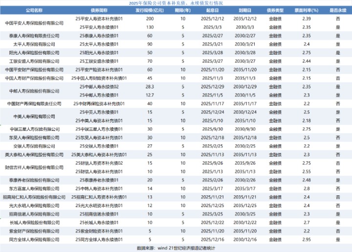 此外,在资本补充债券发行请示获批前,长城人寿已在2025年12月份发行了10亿元规模的永续债。