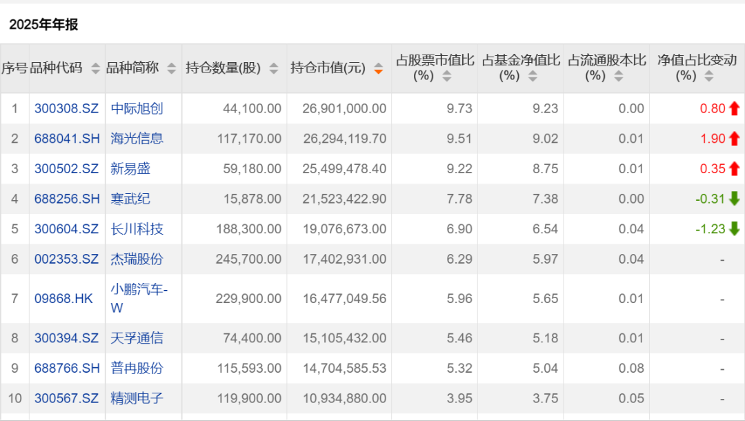 具体来看,截至2025年底,杰瑞股份、小鹏汽车-W、天孚通信、普冉股份、精测电子新进为同泰数字经济主题股票基金前十大重仓股。从同泰新能源优选1年持有期股票基金持仓来看,截至2025年底,斯瑞新材、东方电气、应流股份新进为基金前十大重仓股。