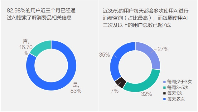 中国商务广告协会在《2025年中国GEO行业发展报告》中提到,当前消费者对人工智能已有高信任度。在一项问卷调查中,有超过8成用户通过AI获取消费信息,近35%消费者每日高频互动,说明消费者向AI咨询消费类问题已经成为日益主流的行为。