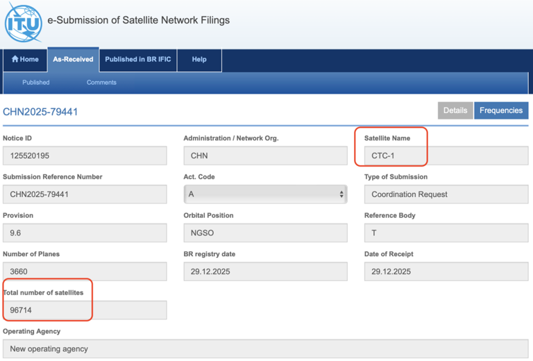 消息方面,近期全球“太空圈地”加速。我国于2025年12月向ITU(国际电信联盟)申请了来自十余个星座超20万颗卫星的频轨资源,每个星座的卫星数量从十余颗到九万余颗不等,其中最大的两个星座是无线电创新院申请的CTC-1和CTC-2,卫星规模均为96714颗。