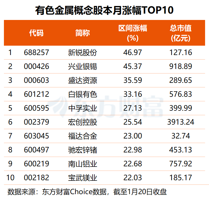 今年以来,有色金属板块走势较好,约九成个股录得上涨,其中新锐股份、兴业银锡区间涨幅均在四成以上,盛达资源、白银有色分别上涨35.59%和33.16%,中孚实业、驰宏锌锗、宝武镁业、锌业股份等11股累计涨幅均在20%至30%之间。