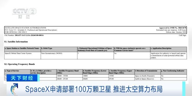 此外,据央视财经1月31日报道,SpaceX于1月30日向美国联邦通信委员会提交申请,计划发射多达100万颗卫星,以打造“轨道数据中心”。根据SpaceX的描述,该“轨道数据中心系统”可为先进的AI模型及相关应用提供支持,相比于在地球上建设传统的AI算力数据中心,利用太空中的太阳能,运营或维护成本极低,借此可实现能源效率的革命性提升。