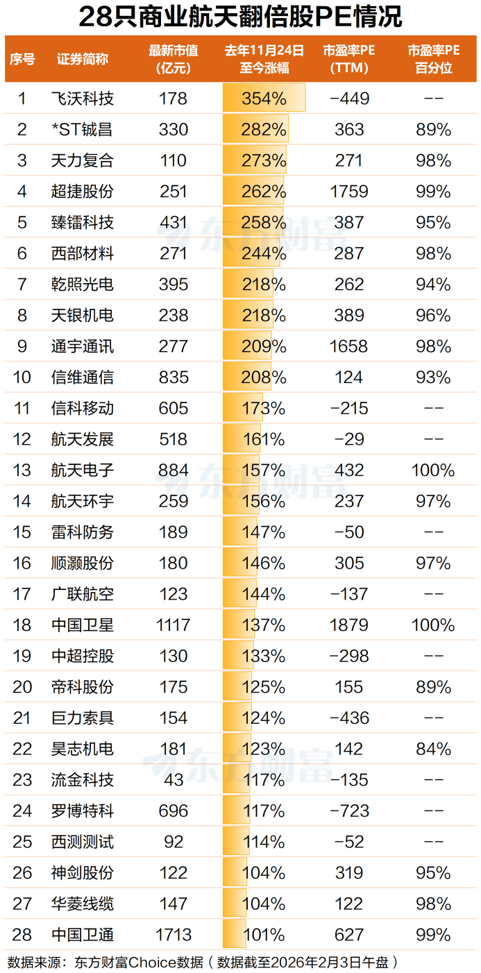 2月3日早盘,商业航天概念高开高走大涨3.67%,个股掀涨停潮——海兰信20CM涨停,罗博特科、帝科股份、春晖智控、隆华科技、乾照光电涨超10%,城建发展、神剑股份、泰豪科技、巨力索具、沃格光电、东方钽业、天通股份、金隅集团、江顺科技、派克新材、通宇通讯、航发控制、中超控股、航天发展、中集集团等十余股涨停。