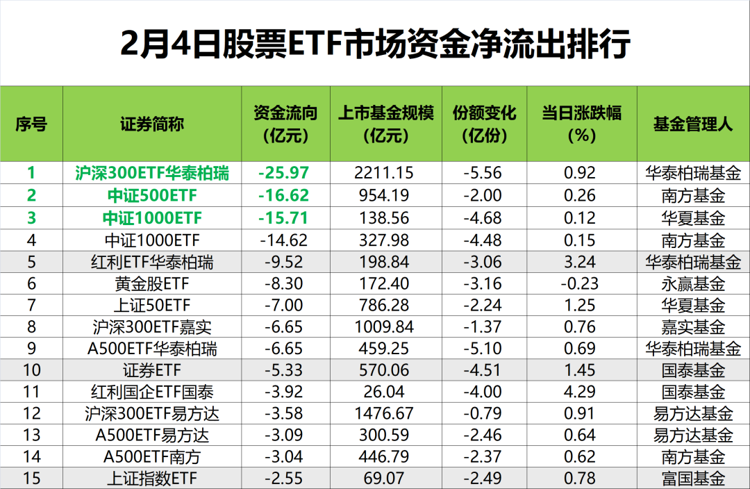 南方基金旗下中证500ETF、华夏基金旗下中证1000ETF等产品昨日净流出也超10亿元,位居市场前列。