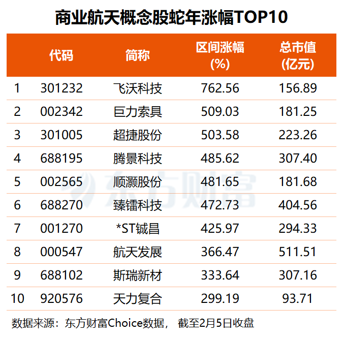 展望马年,华龙证券指出,国内外发射任务密集落地,可回收火箭技术攻坚迎来关键突破,全产业链迎来价值重估与格局重塑,建议关商业航天“上游研发制造-中游发射服务-下游运营应用”全产业链投资机会。