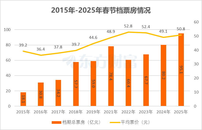 聚焦于春节档,2015年以来,若剔除因疫情撤档的2020年和观影需求报复性反弹的2021年,档期票房呈现持续增长态势。