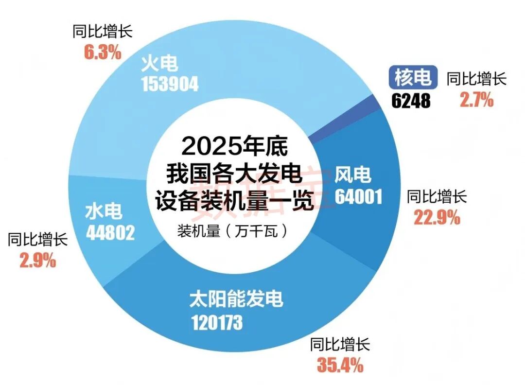 国家能源局数据显示,截至2025年底,我国累计发电装机容量达38.9亿千瓦,同比增长16.1%,相当于约170座三峡电站总装机量,远超G7国家之和,发电量占全球总量的三分之一。新能源装机实现历史性突破,2025年我国风光装机首超火电,非化石能源发电量占比达42.9%,能源绿色转型取得阶段性成果。
