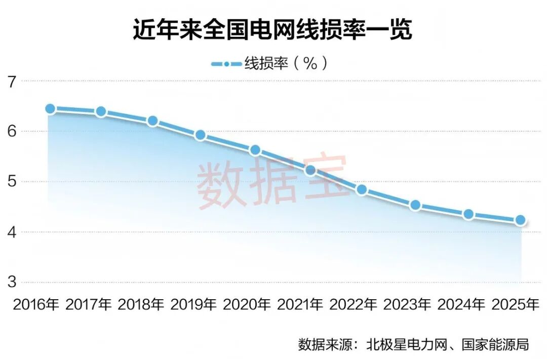技术优势还体现在供电可靠性、传输线损率等多个指标上。2025年上半年全国平均供电可靠率达99.948%,用户平均停电时间同比大幅下降,在全球处于领先地位。此外,2016年全国电网线损率为6.47%,到2025年大幅降低至4.23%,显示出我国在降低电能传输损耗方面取得的显著成效。