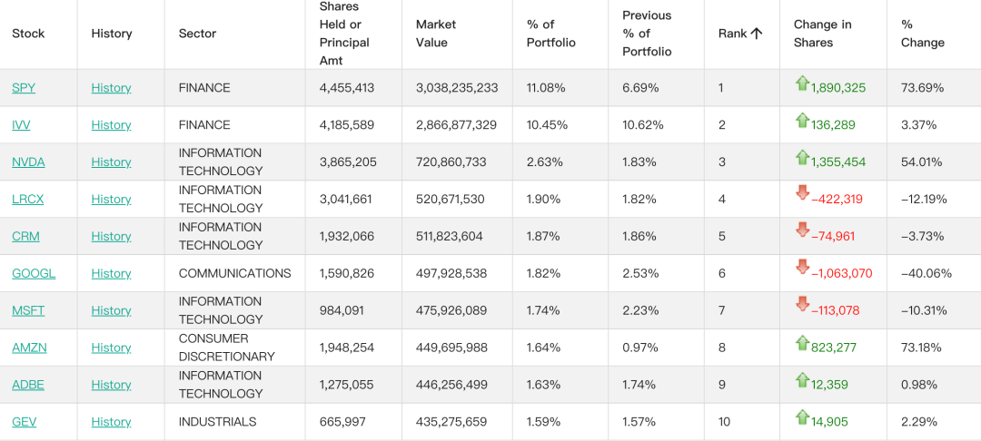 桥水截至2025年末前十大持仓 图片来源:whalewisdom.com