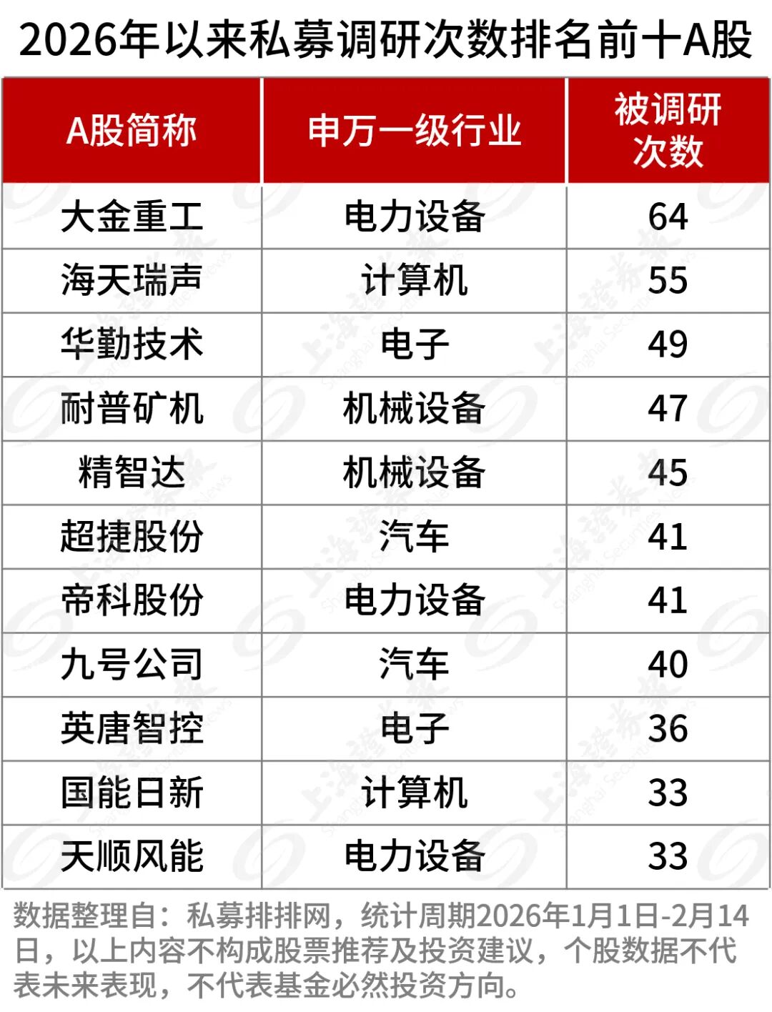 据私募排排网统计,截至2026年2月14日,今年以来61家私募调研频次超过10次,其中百亿级私募多达20家。