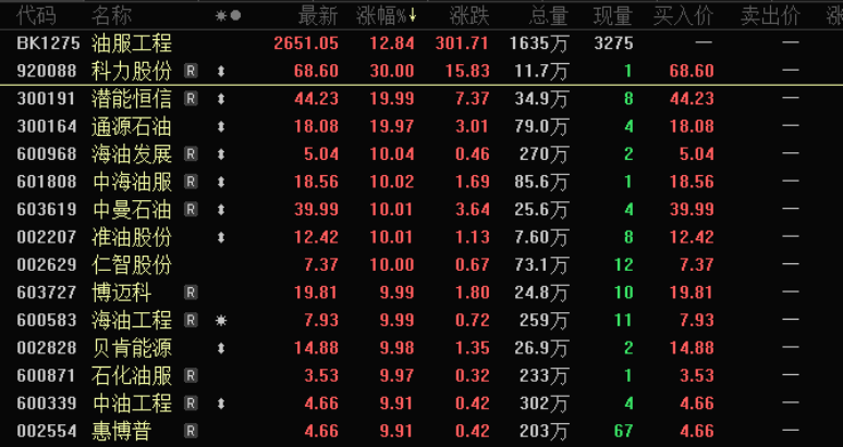 油气板块全线爆发。