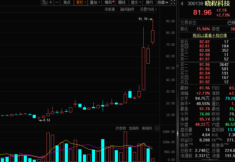 具体来看,晓程科技(300139)2024年初股价最低不足6元,3月3日股价一度逼近92元,其间最大涨幅接近16倍。翔鹭钨业和章源钨业2024年以来最大涨幅则均超过11倍。
