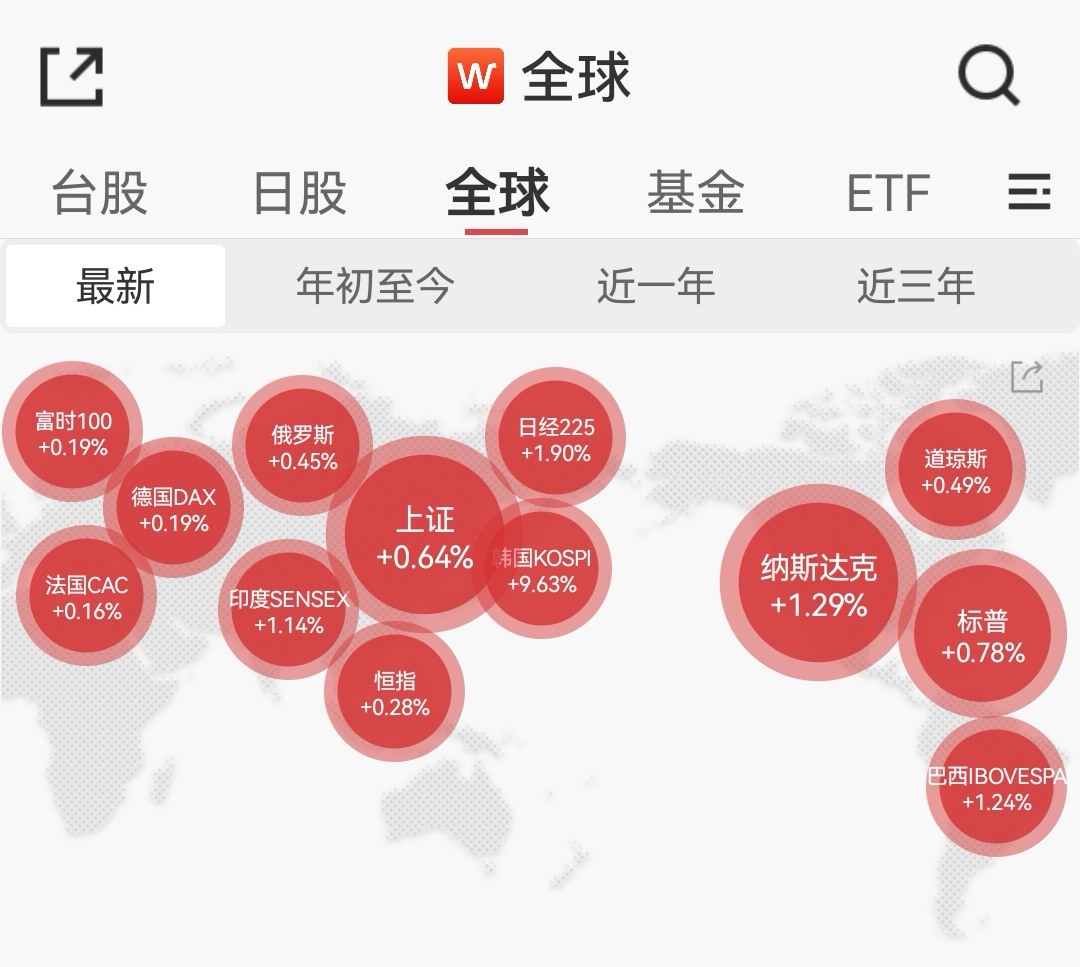 外围市场同样暖意融融,韩国综合指数大涨9.63%,一度因大涨而启动指数熔断机制;日经225指数上涨1.90%。隔夜美股也全线收涨,道指涨0.49%,标普500指数涨0.78%,纳指涨1.29%,大型科技股表现抢眼。