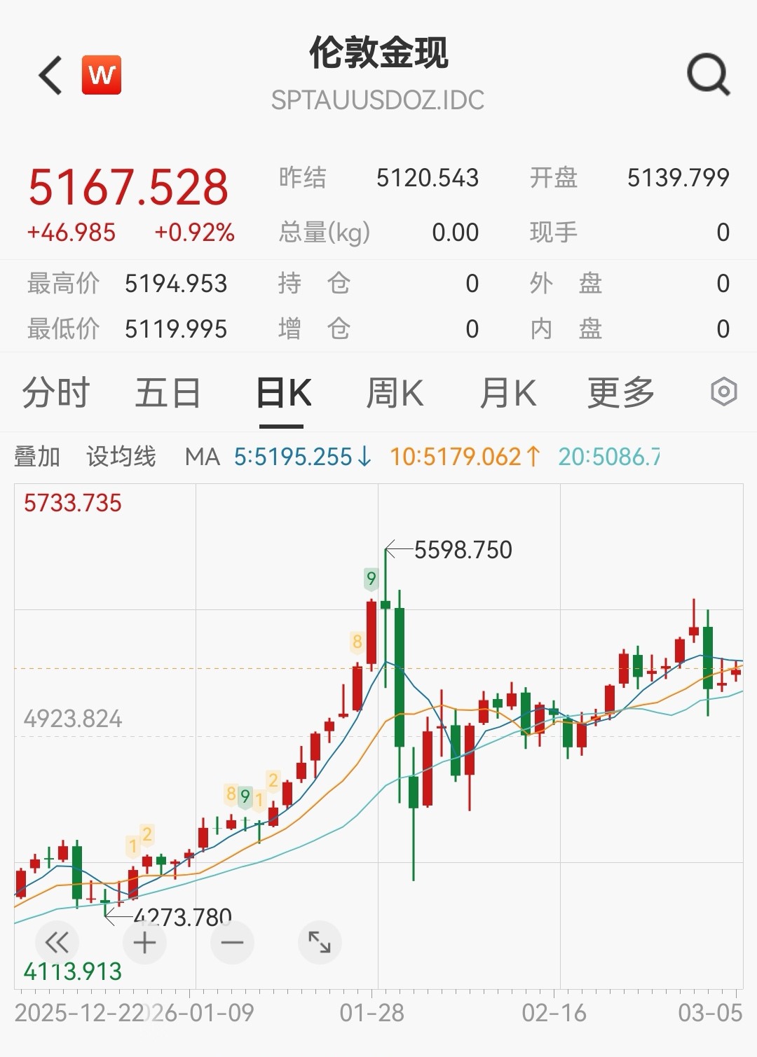 现货黄金在3月3日一度跌破5000美元/盎司关口;伦敦银现在3月2日至3月3日的两个交易日内,更是跌超12%。随后两天黄金和白银价格小幅走高,截至3月5日,现货黄金价格在5160美元/盎司附近波动,白银价格震荡至84美元/盎司附近。