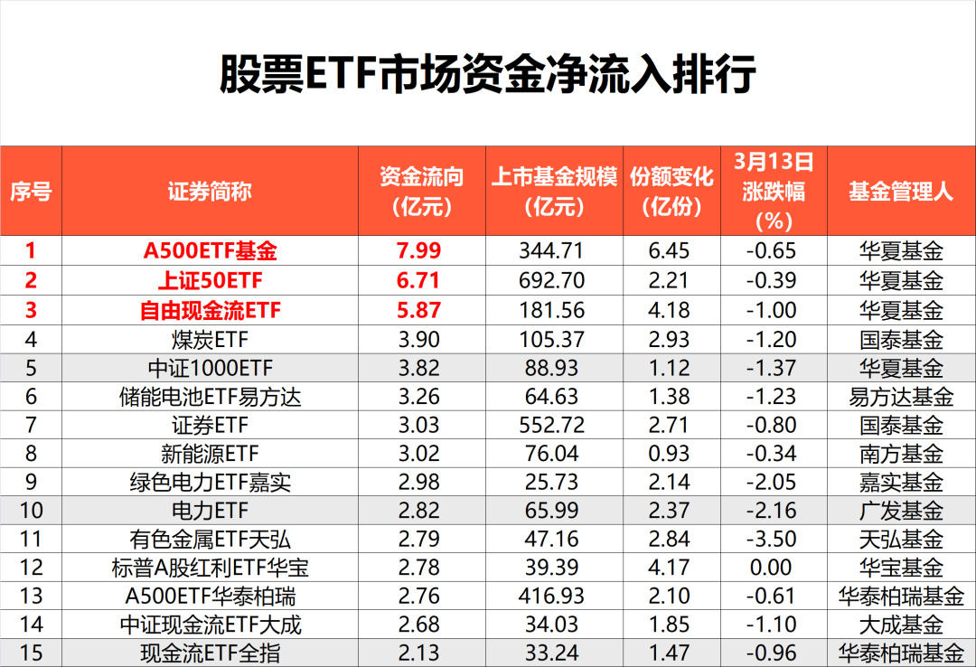 市场下跌背景下,头部基金公司旗下ETF仍然持续净流入。