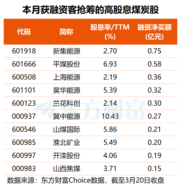 值得注意的是,上述21只高股息煤炭股中,有多股本月获得杠杆资金青睐,新集能源、平煤股份分别获融资客抢筹0.75亿和0.58亿元,上海能源、昊华能源、兰花科创融资净买额均在3000万元以上,冀中能源等3股也获杠杆资金加仓超2000万元。