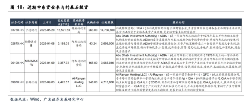 广发证券策略刘晨明团队认为,今年以来,中东资金从过去参与电动车产业链如宁德时代的IPO基石投资,逐步延伸到Minimax、精锋医疗、东鹏饮料等领域,可能反映出其在香港一级市场已积累起较为可观的回报基础,进而驱动其适度拓展投资边界。