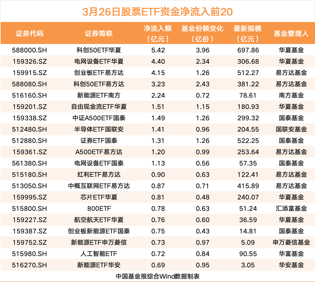 3月26日,A股三大指数集体收跌。股票ETF市场上,资金延续了净流出态势,当日净流出超37亿元。