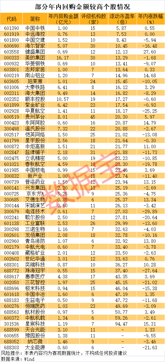 除了美的集团,近期还有不少千亿白马密集扫货。数据显示,今年以来已经有29家最新总市值在千亿元以上的公司回购了股份。其中,美的集团、顺丰控股等年内回购均超10亿元,贵州茅台、温氏股份、紫金矿业、大秦铁路、京东方A、海尔智家等个股回购均超5亿元。