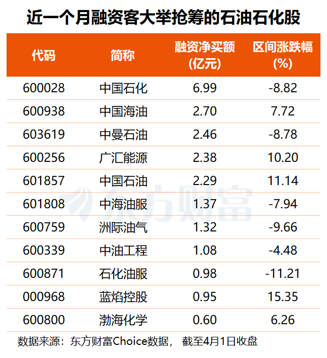 其中,中国石化获杠杆资金加仓6.99亿元,中国海油、中曼石油、广汇能源等4股融资净买额在2.29亿至2.70亿元之间,中海油服、洲际油气等3股获融资客超1亿元抢筹,石化油服、蓝焰控股也获超9000万元融资净买入。