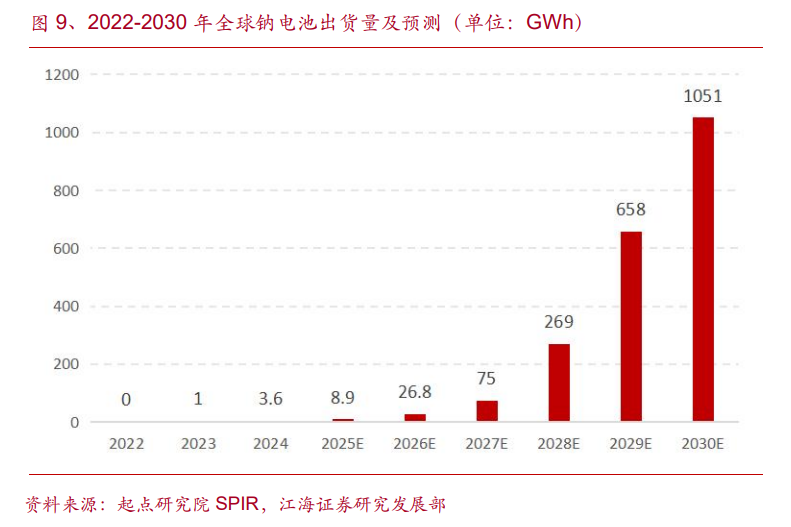 起点研究院数据显示,2025年全球钠离子电池出货量达9GWh,同比增长150%,预计2026年全球出货量将达26.8GWh,同比增长198%。而到2030年,全球储能钠电池市场规模将达580GWh,同期汽车使用钠电池的市场规模将突破410GWh。